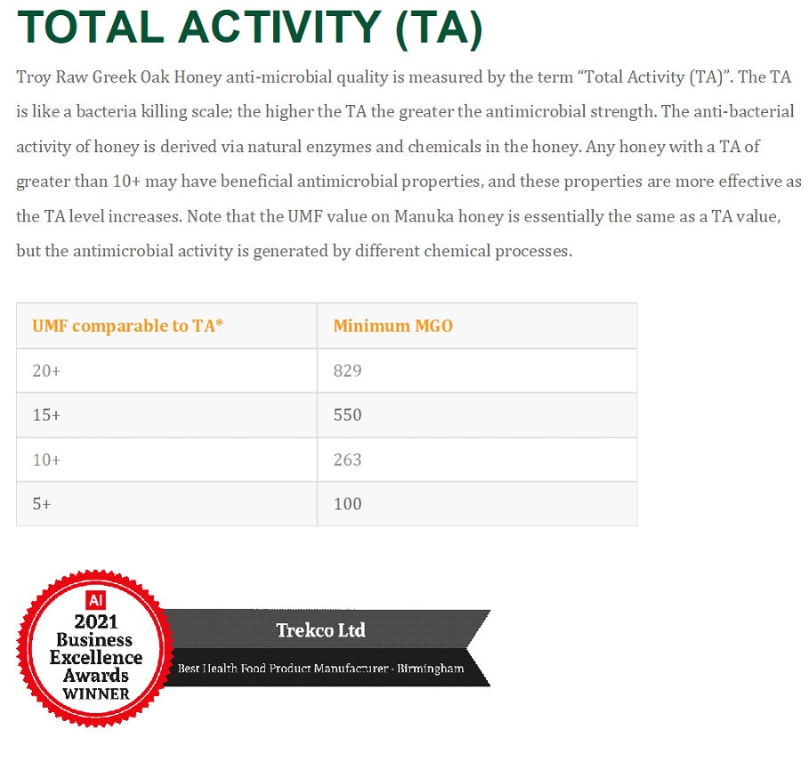 TROY RAW GREEK OAK HONEY TA 19+ , 100% Natural Raw Oak Honey 250g, is characterized as honey of very high nutritional value. Rich in antioxidants and minerals