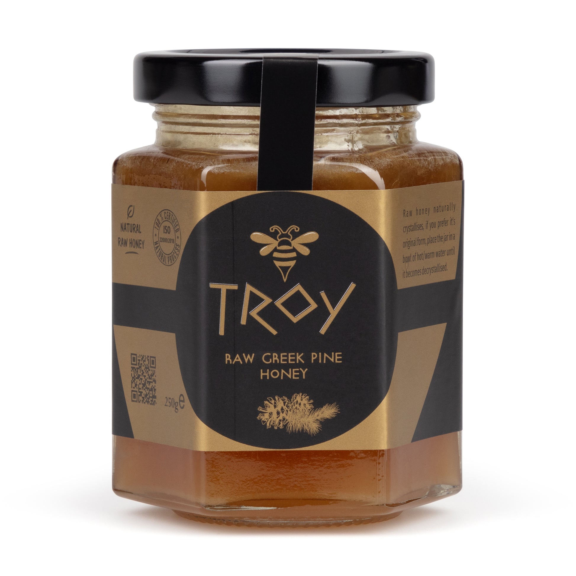 TROY RAW PINE HONEY] Pure Natural Raw Greek Pine Honey 250g, has anti- inflammatory properties, antioxidant, immunostimulant, cleansing and can assist in the cure of some bacterial, dermatological, degenerative, inflammatory and autoimmune diseases.